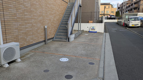 お車は店舗横に駐車してください、5ナンバーサイズまでは縦列で2台停めることができます。可能であれば、奥に停めてください。